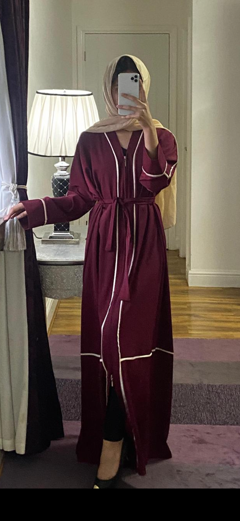 Beautiful maroon abaya  belt included  one size  midel is 5.7